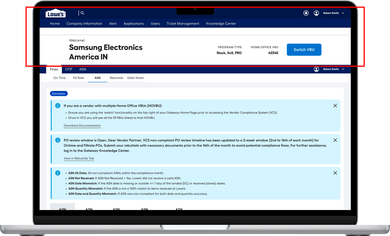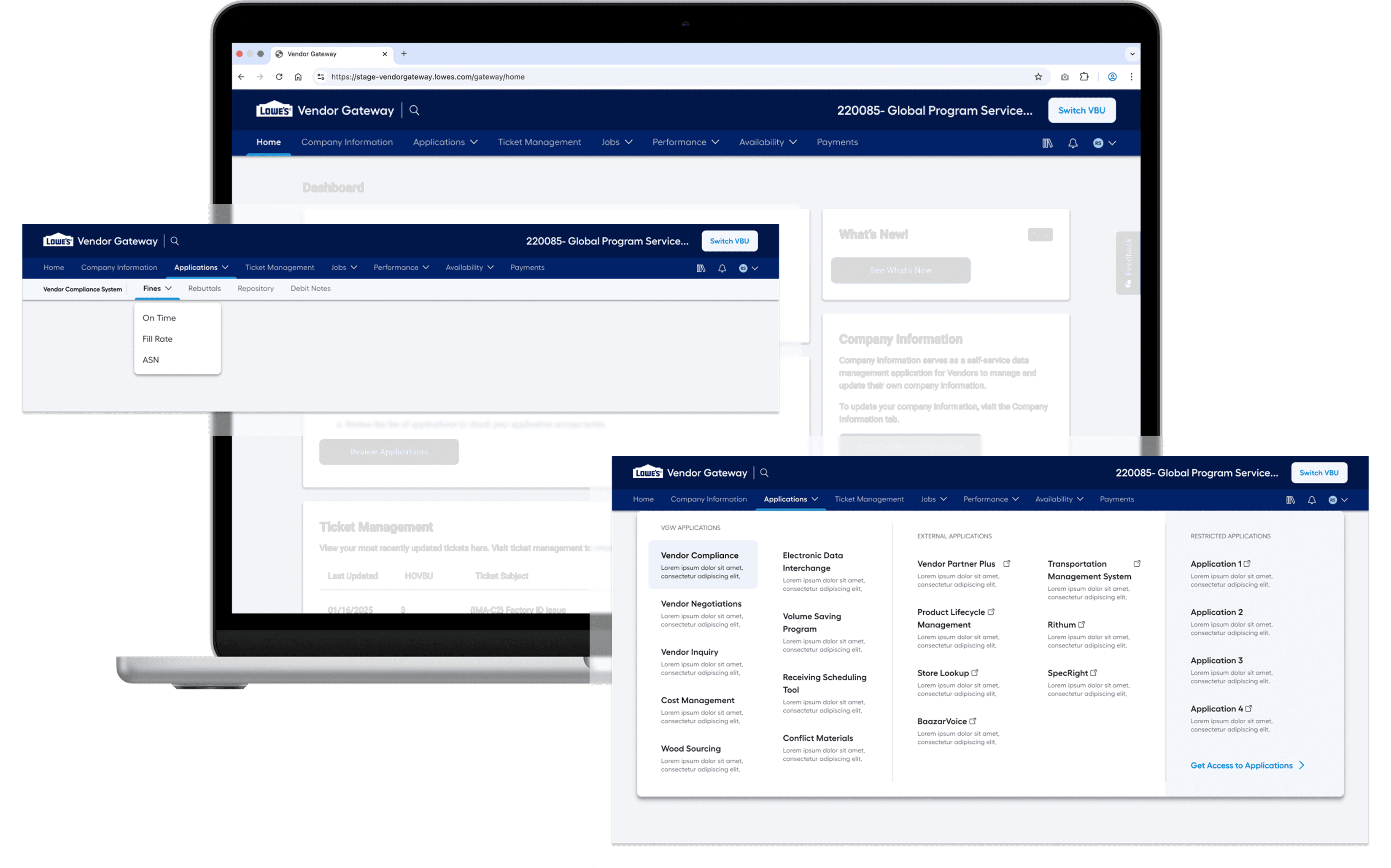 The platform supports multiple enterprise applications used by vendors and internal associates daily. Over time, the masthead evolved across teams, resulting in the following