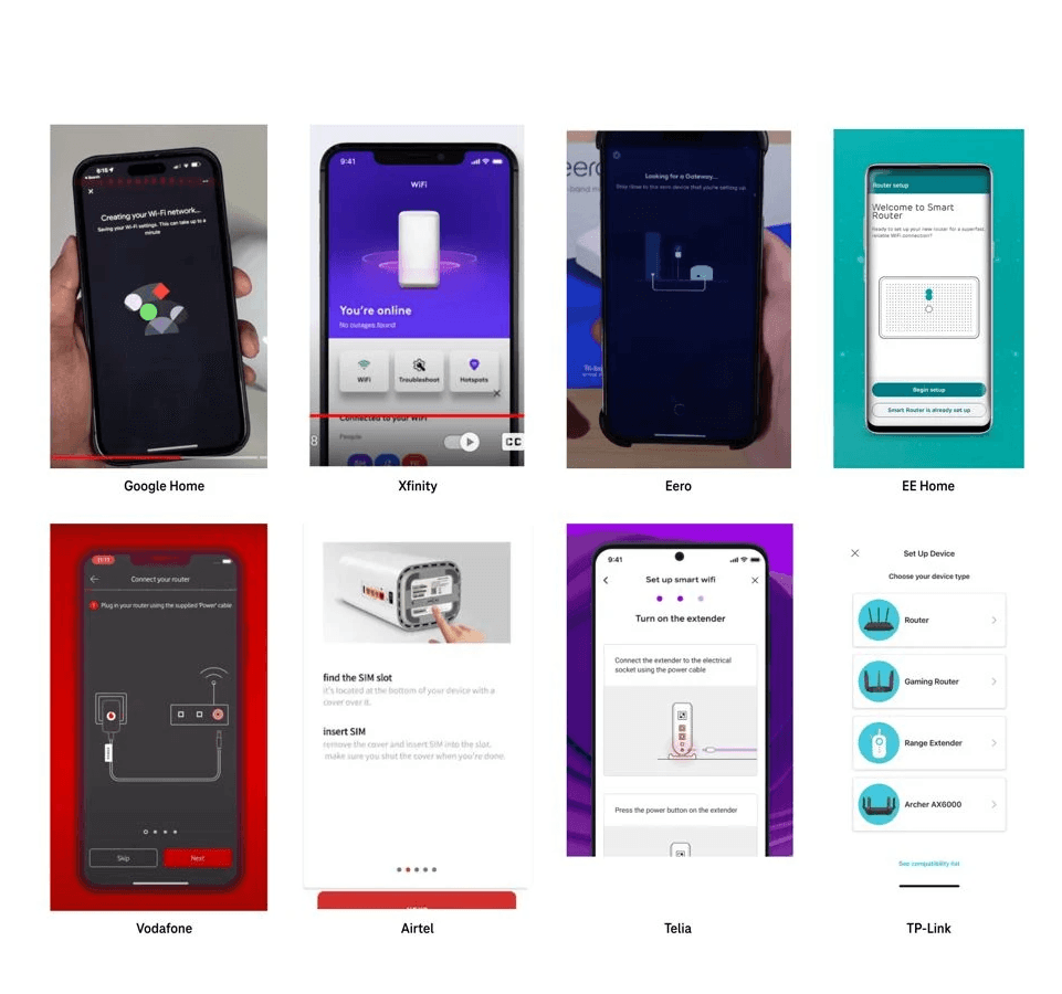 Google, Xfinity, Eero, EE, Vodafone, Airtel, Telia, TP-Link